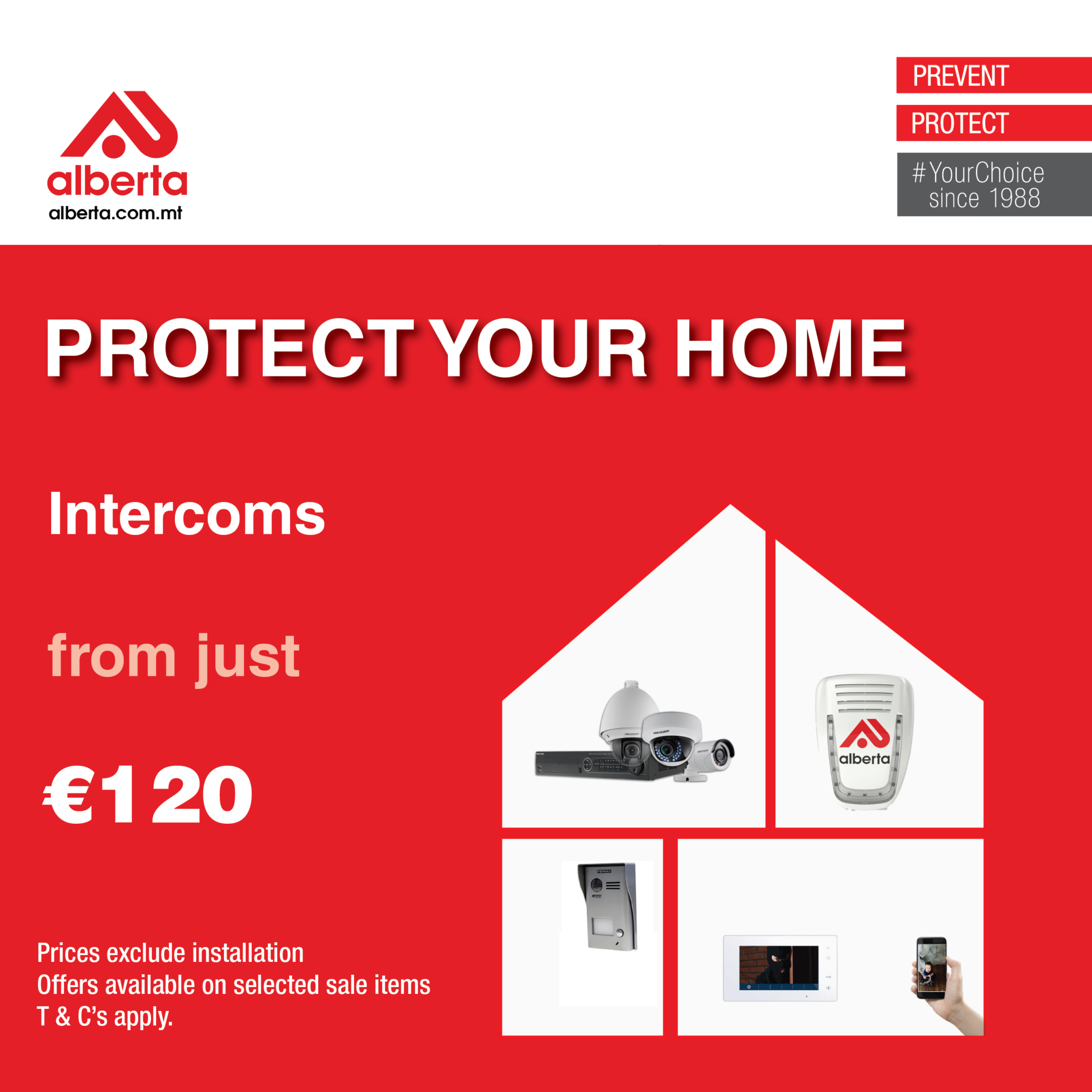 Intercoms starting from just €120.00.  Price excludes installation and is not included in conjunction with any other offer.