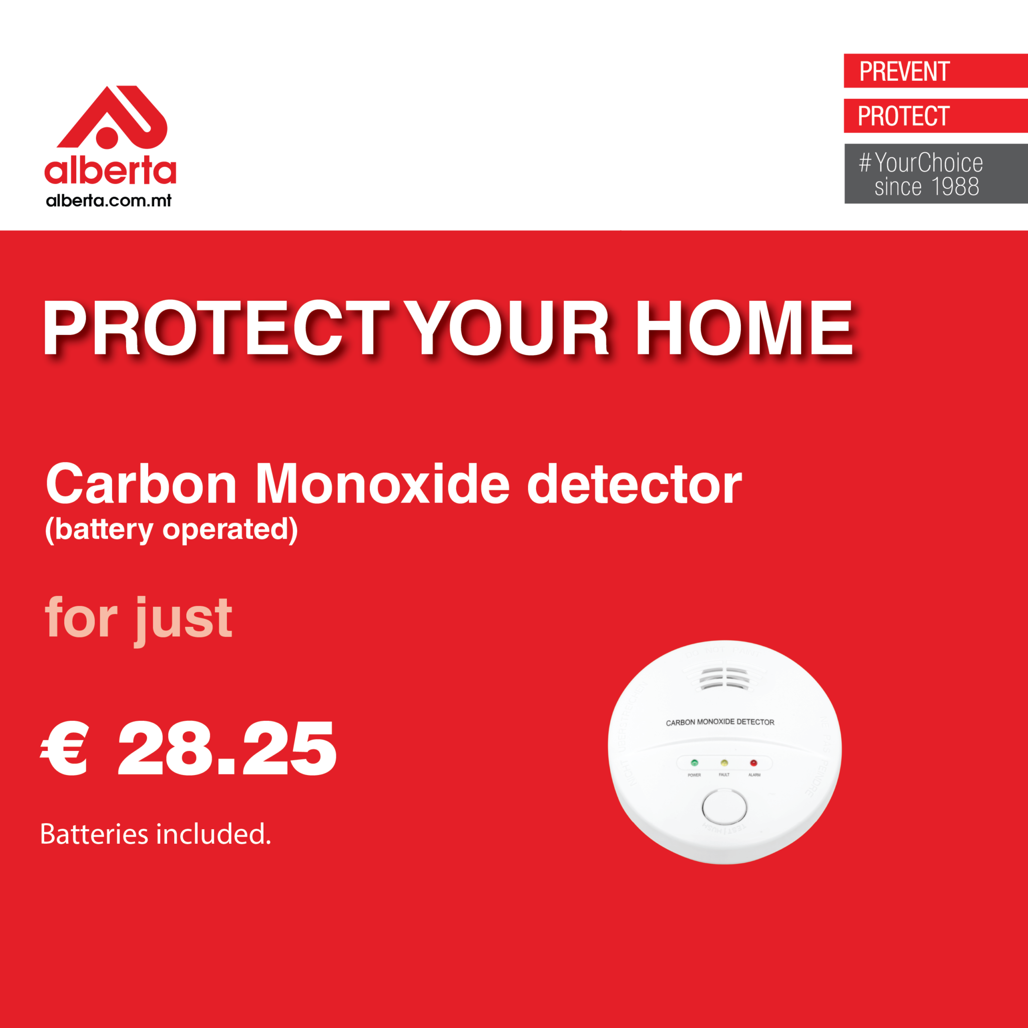 Carbon Monoxide detector battery operated for just  Euro 28.25.