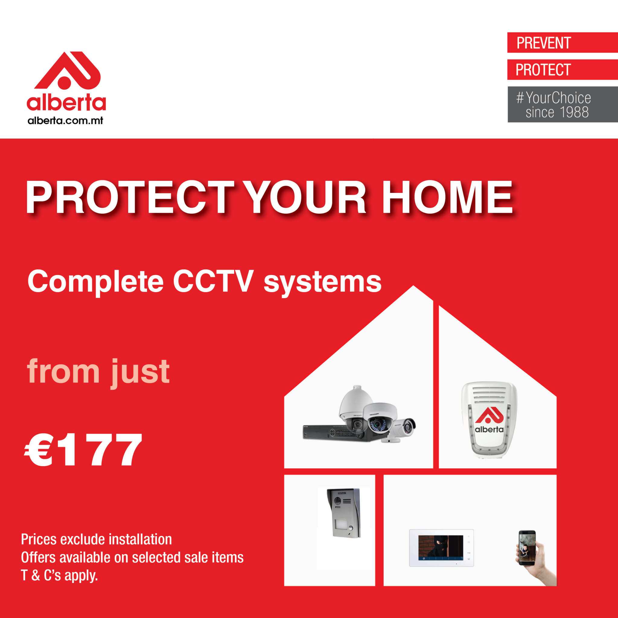 Intruder alarm from just € 270.00.    Price excludes installation and is not included in conjunction with any other offer.