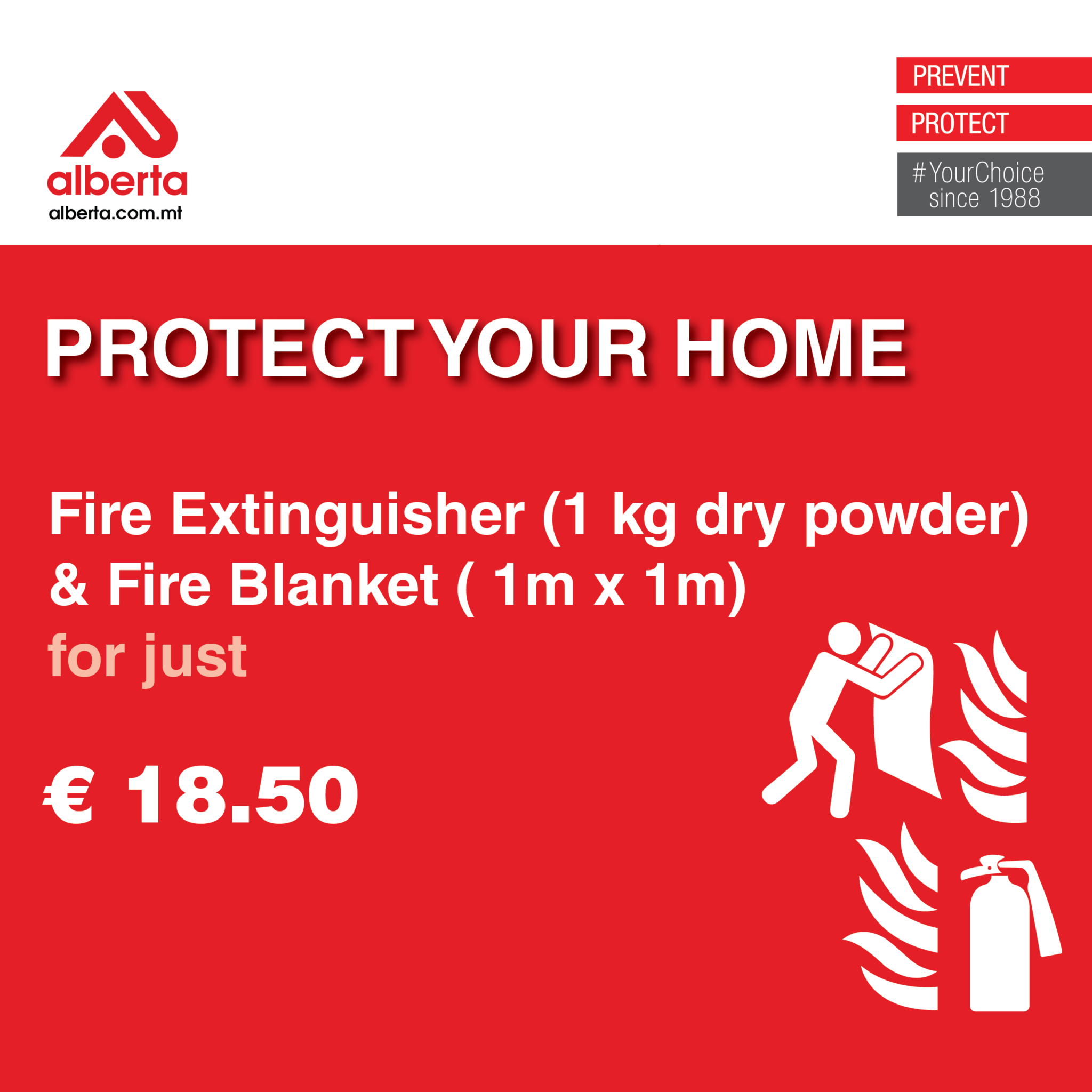 Fire Extinguisher (1 kg dry powder) & Fire Blanket for just € 18.50 including VAT.