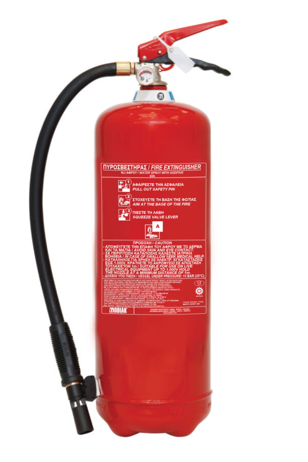 Fire Extinguisher Water with Additive, with one seam vessel, Internal Plastic Layer and Pressure Gauge Safety Release Valve.